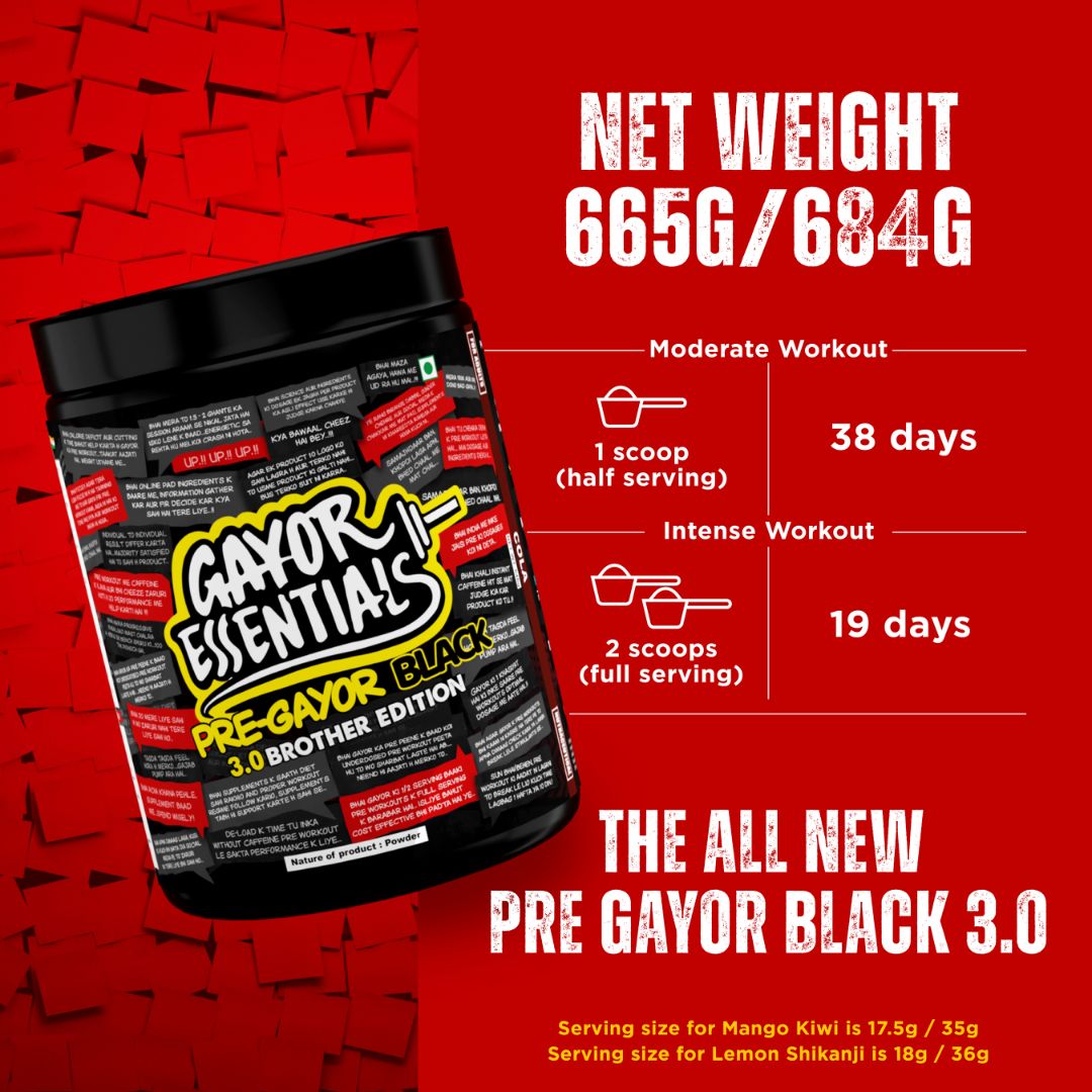 Pre Gayor Black 3.0 (Optimally Dosed Advanced Pre Workout Formula with 5 Patented Ingredients)